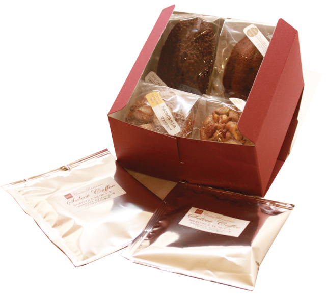 (マカダミア)ホワイトチョコレートを使った生地にチョコレートチップとマカダミアナッツをトッピングした香ばしい焼き菓子です。(チョコフィナンシェ)チョコレートとバターの香り漂うしっとりとしたフィナンシェです。(ショコラマドレーヌ)カカオロマンスのチョコレートと香り豊かなココアを使ってふんわり焼き上げました。(リンツァー)チョコレートとシナモンを使った生地に甘酸っぱいフランボワーズジャムを加えた相性が絶妙の焼き菓子です。